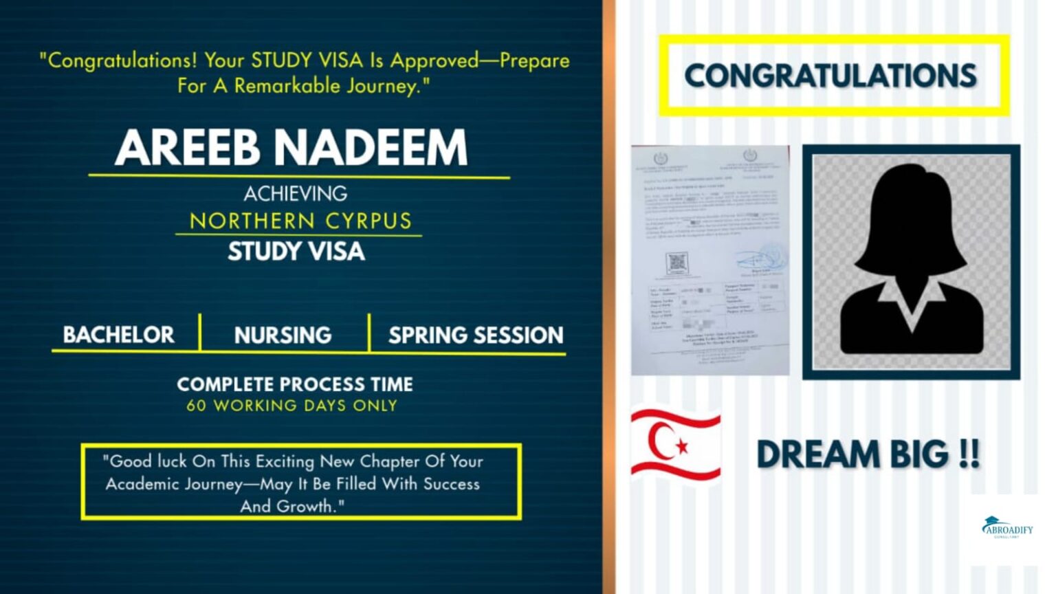 She is studying in Northern Cyprus and doing bachelor in Nursing and got Admission there in spring season